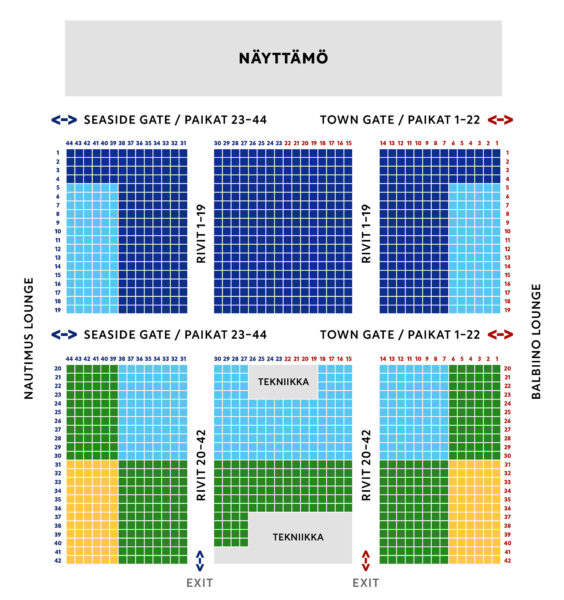 Vaaleansiniset paikat (B-kategoria) lisämaksu 20 €/hlö